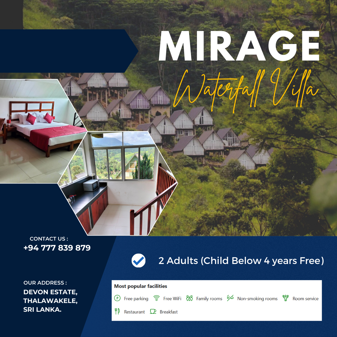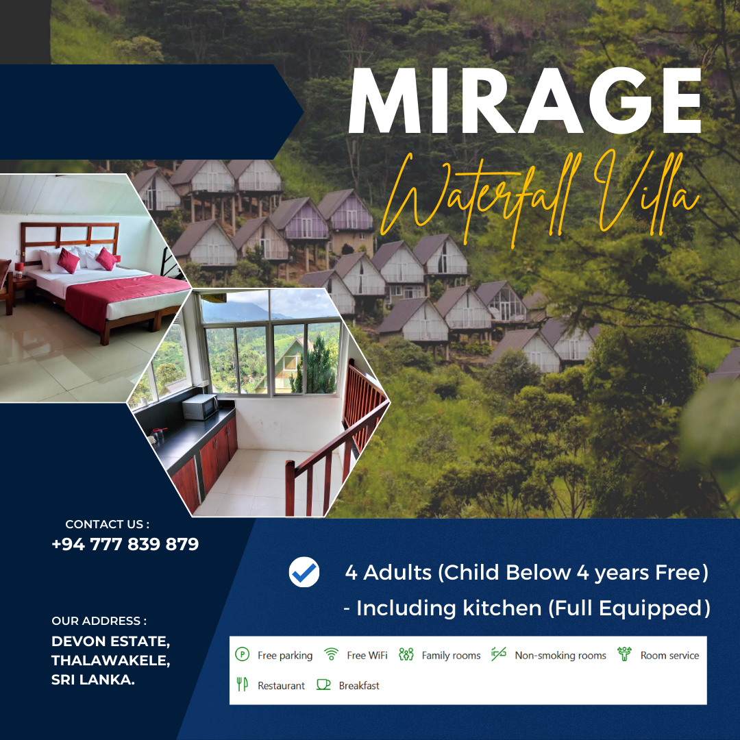 Whether guests seek relaxation, adventure, or simply a peaceful getaway, Mirage Waterfall Villa in Thalawakele offers an unforgettable retreat in the heart of Sri Lanka's natural beauty.